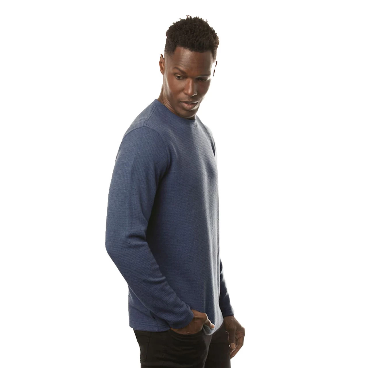 CLOUD WAFFLE CREW. With a focus on supreme comfort and elevated style, the crew neck layering piece features a unique waffle fabrication with natural neps.