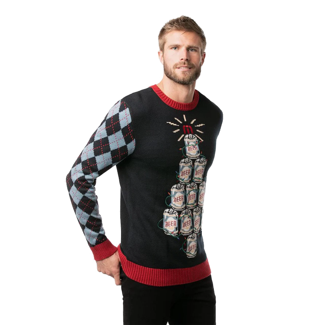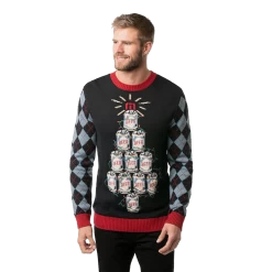 This Christmas sweater classic holiday patterns on the sleeves but with a Travis Mathew twist. The beer can tree with TM star on the tip will have you ready for your holiday Christmas party in no time. The Good Tidings keg-mas tree sweater will be the life of the party.